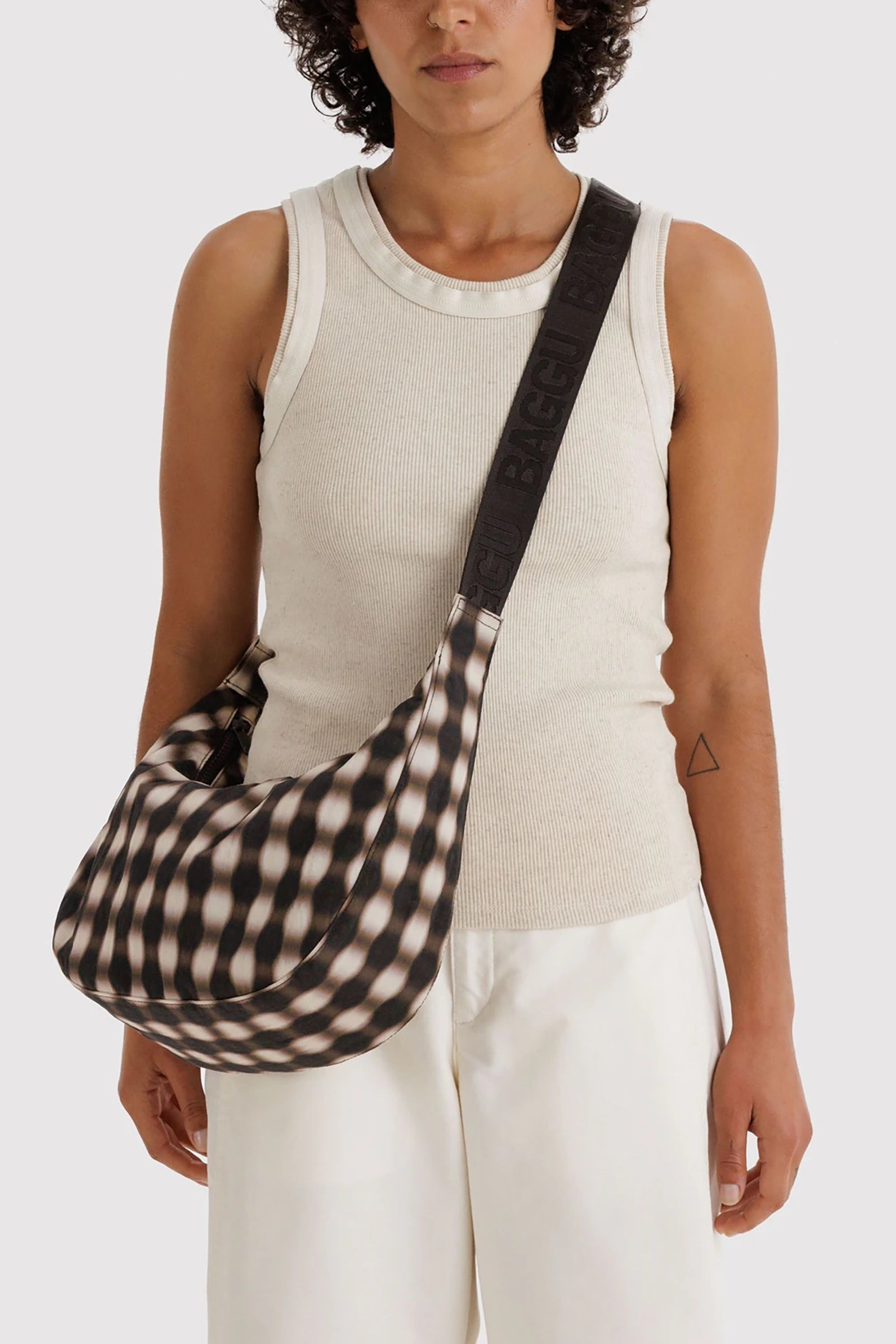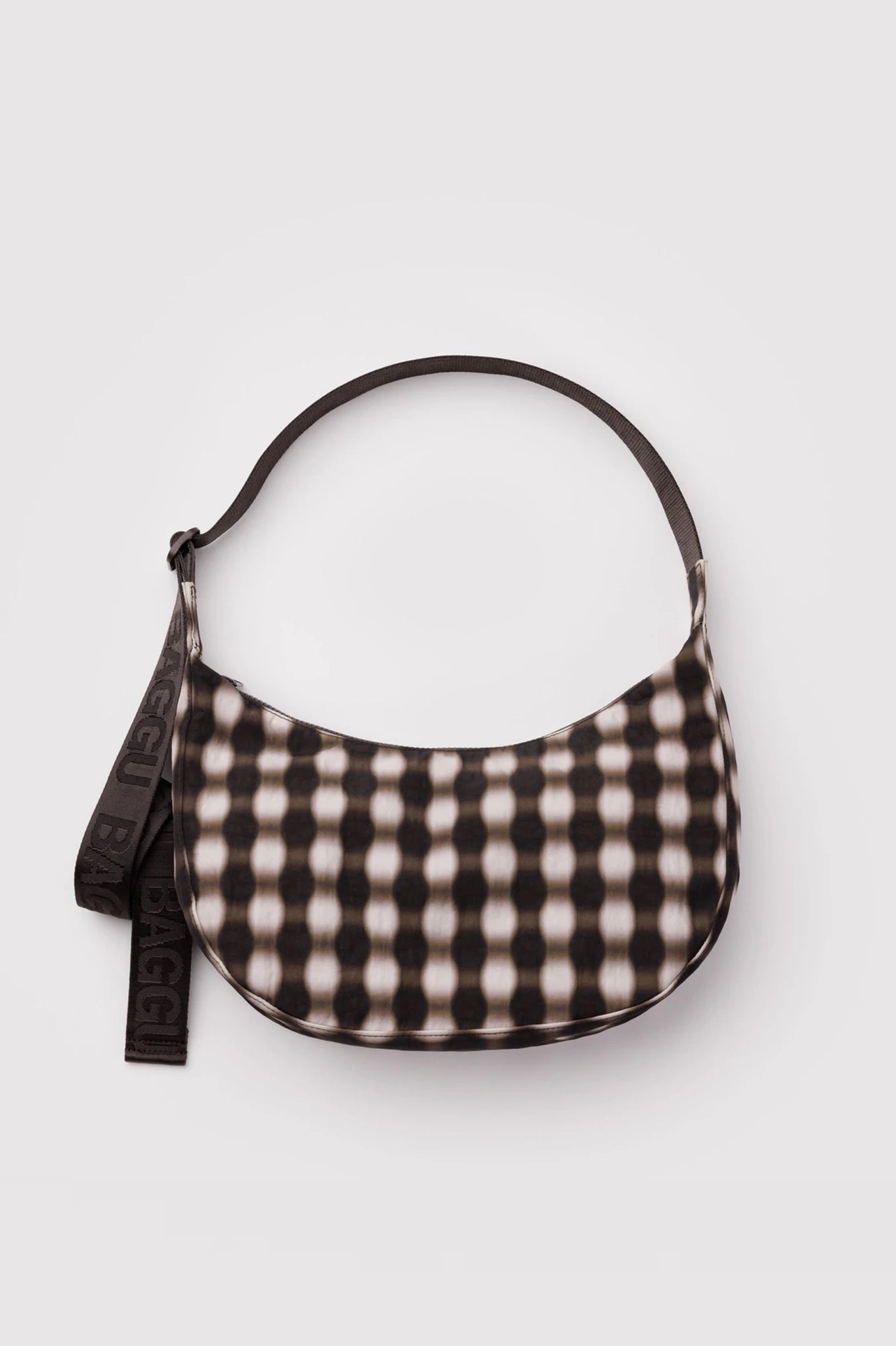 Medium Nylon Crescent Bag Blurred Gingham Brown