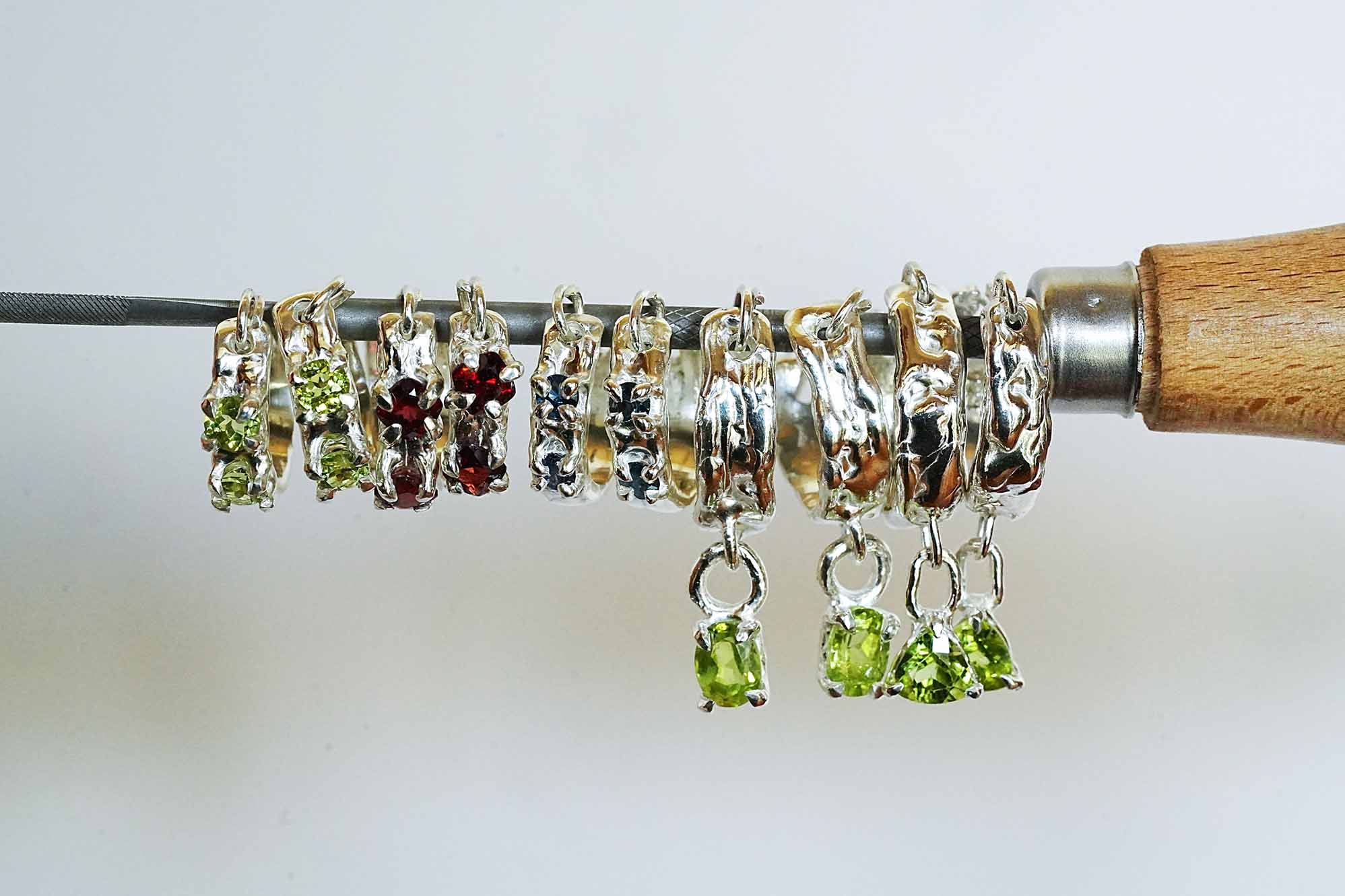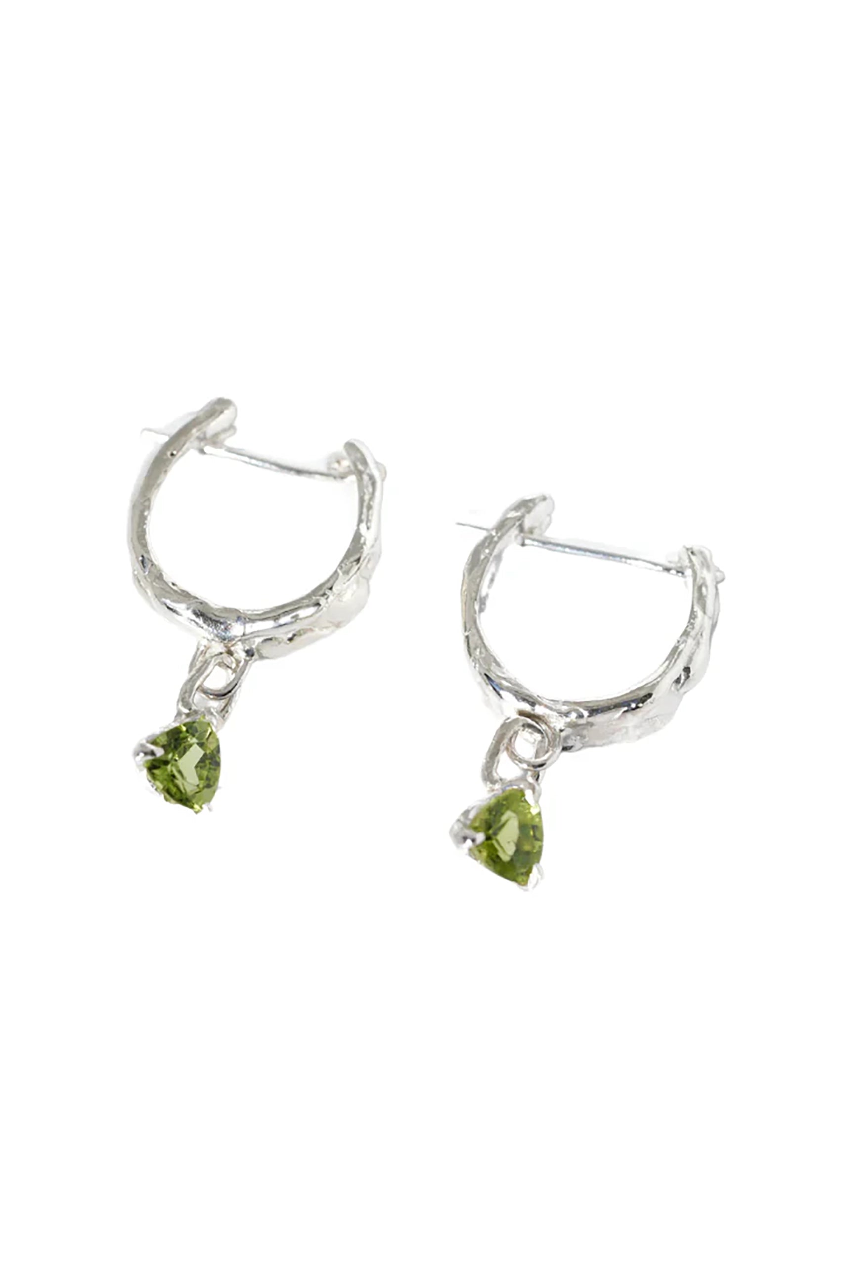 Introducing the new hinge back hoop earrings. These hoops go the full way around and the wire locks in at the back. These earrings feature two peridot stones. Handmade using recycled sterling silver by Emi in Melbourne.