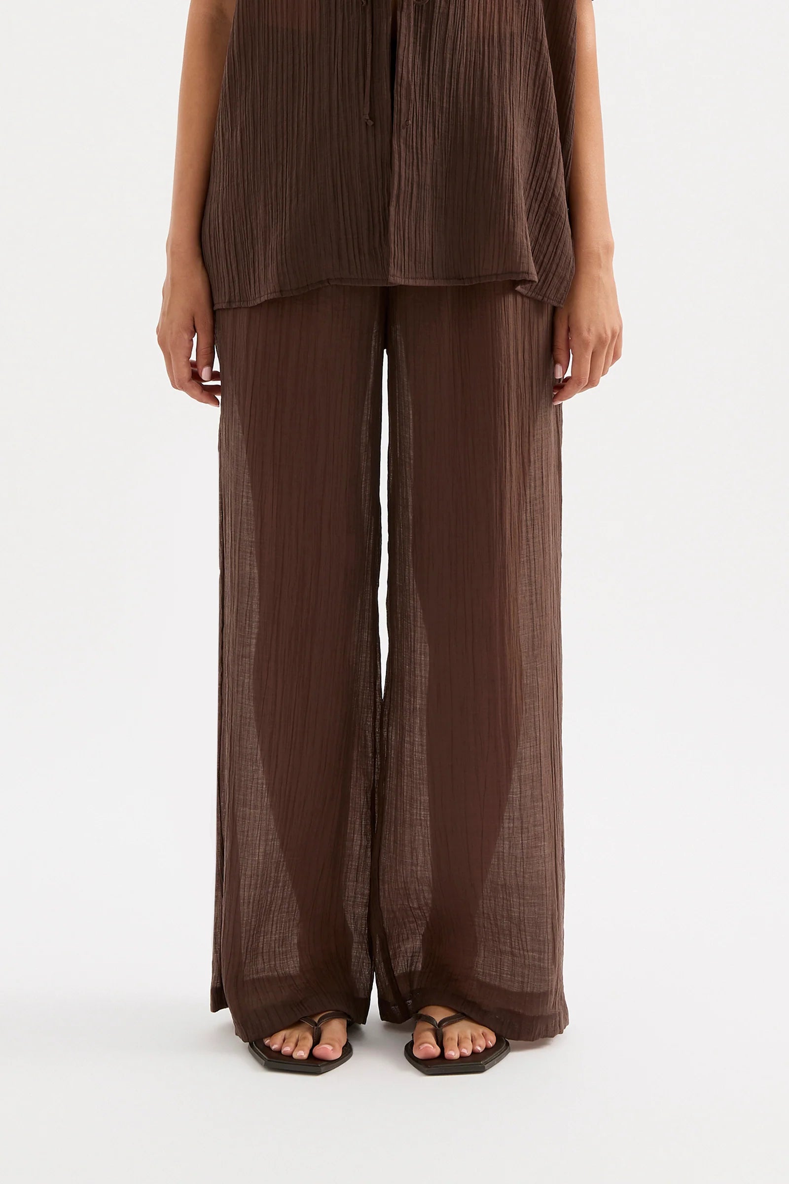 The Maxx Pant is made from a lightweight, crinkled fabric which has a dry hand feel. The silhouette is a relaxed, wide leg, full length pant. Features include an elasticated waistband, drawstring and side seam pockets.