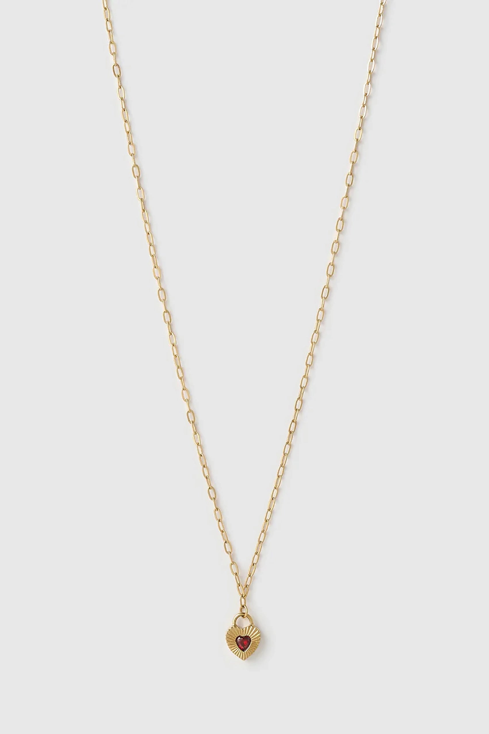 Add a touch of romance to your everyday stack with the Ruby Heart Necklace, a cute piece sure to be adored by all! Featuring a heart charm with a shimmering stone, Ruby will have you turning heads and capturing hearts wherever you go.