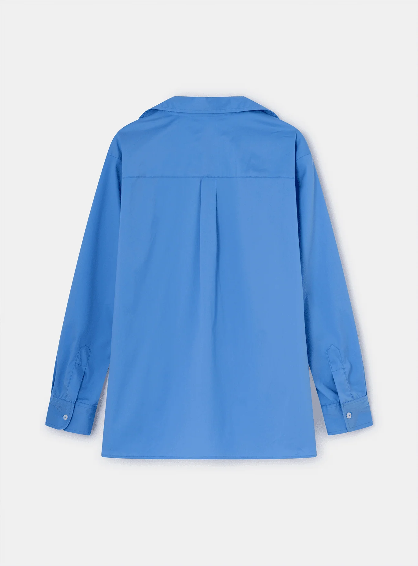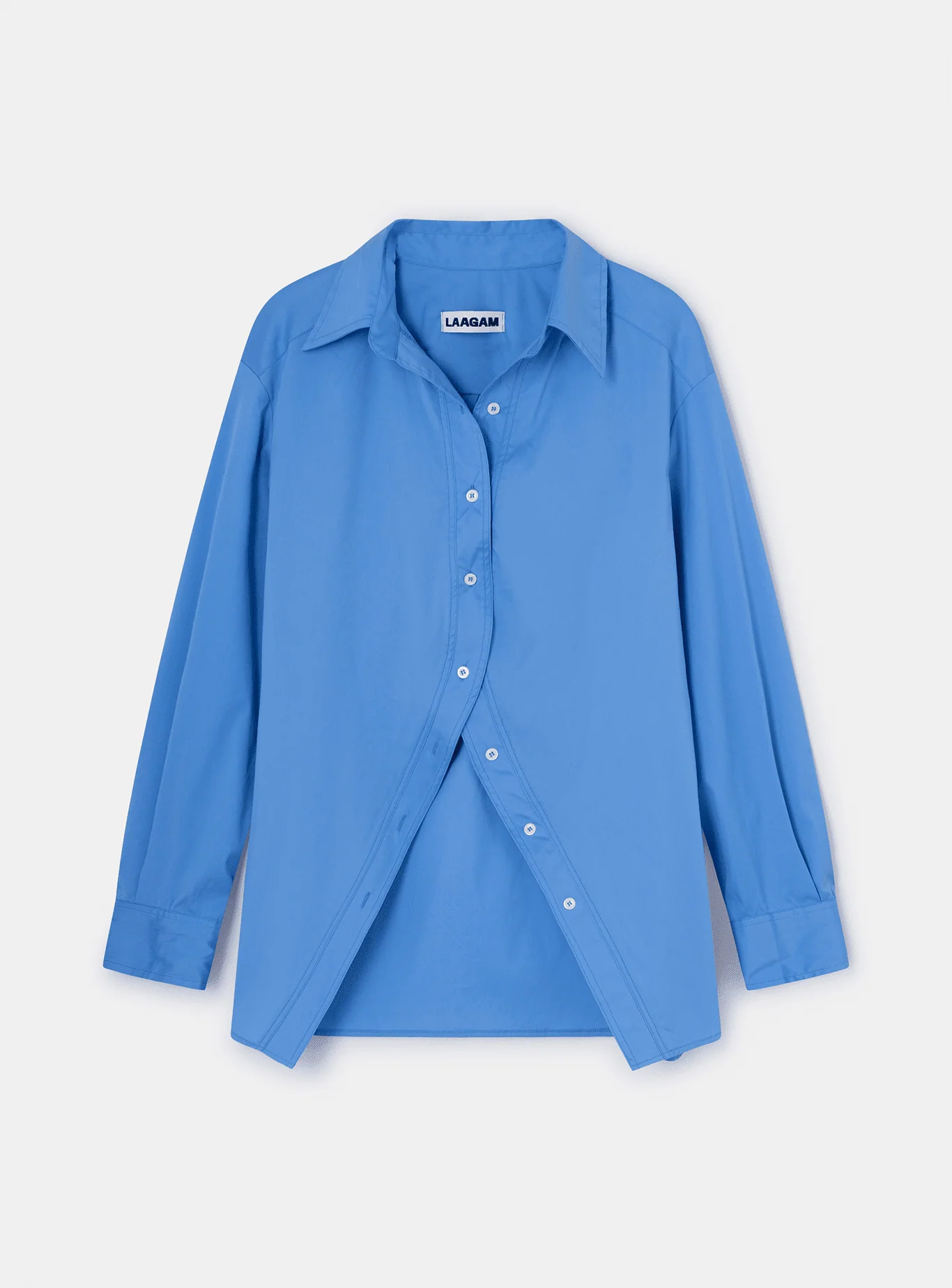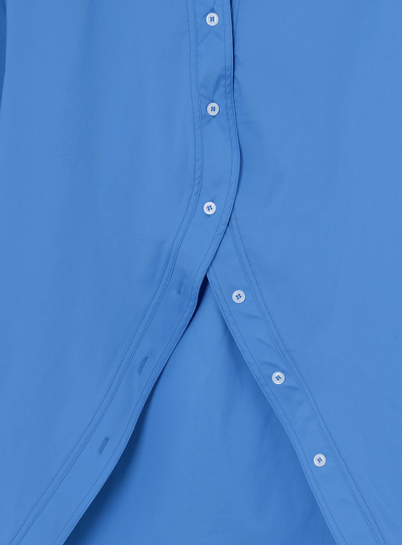 Multi-position cotton shirt. Oversize fit. Lapel collar, french cuffs and dropped shoulders. Asymmetric front button closure.
