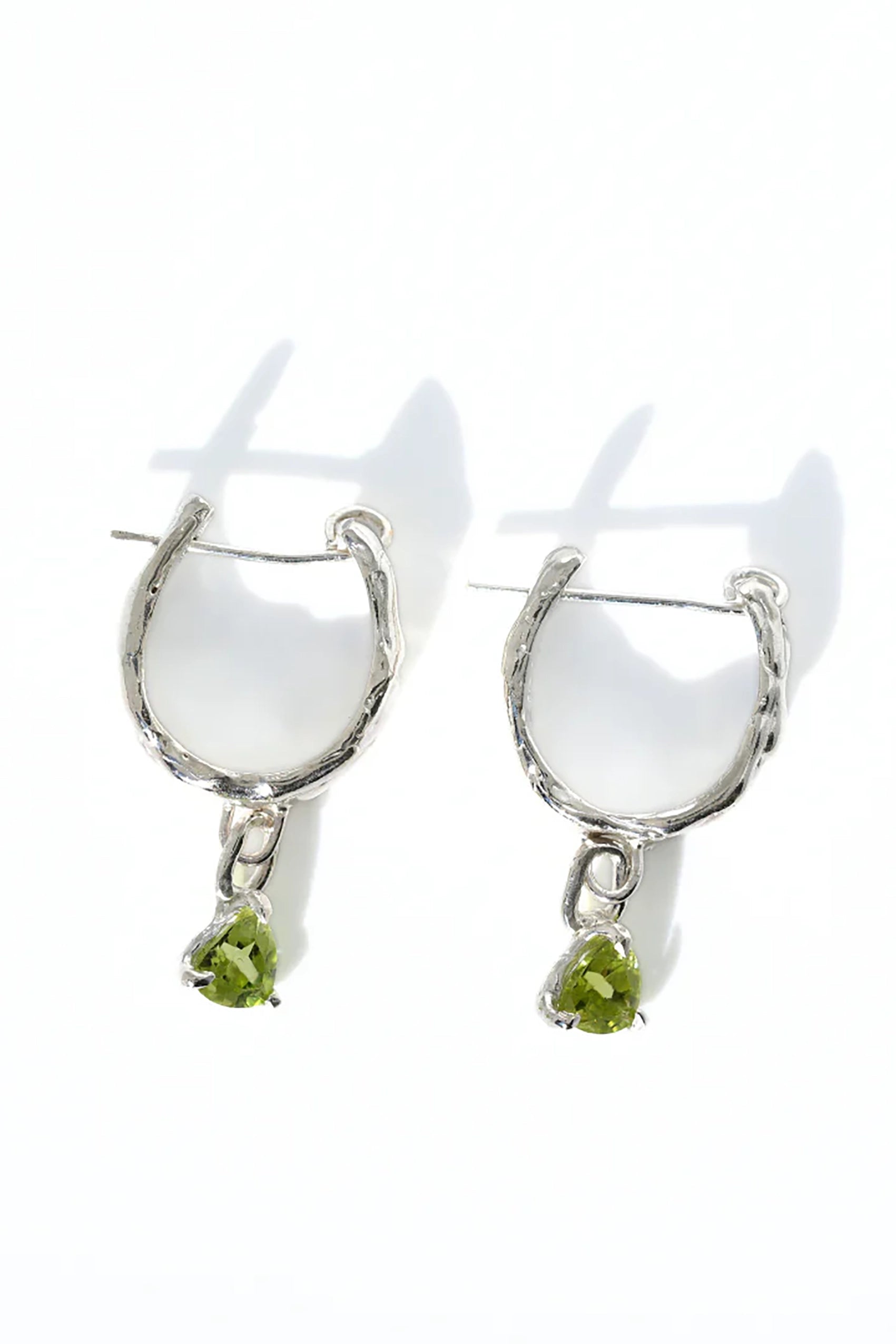 Introducing the new hinge back hoop earrings. These hoops go the full way around and the wire locks in at the back. These earrings feature two peridot stones. Handmade using recycled sterling silver by Emi in Melbourne.