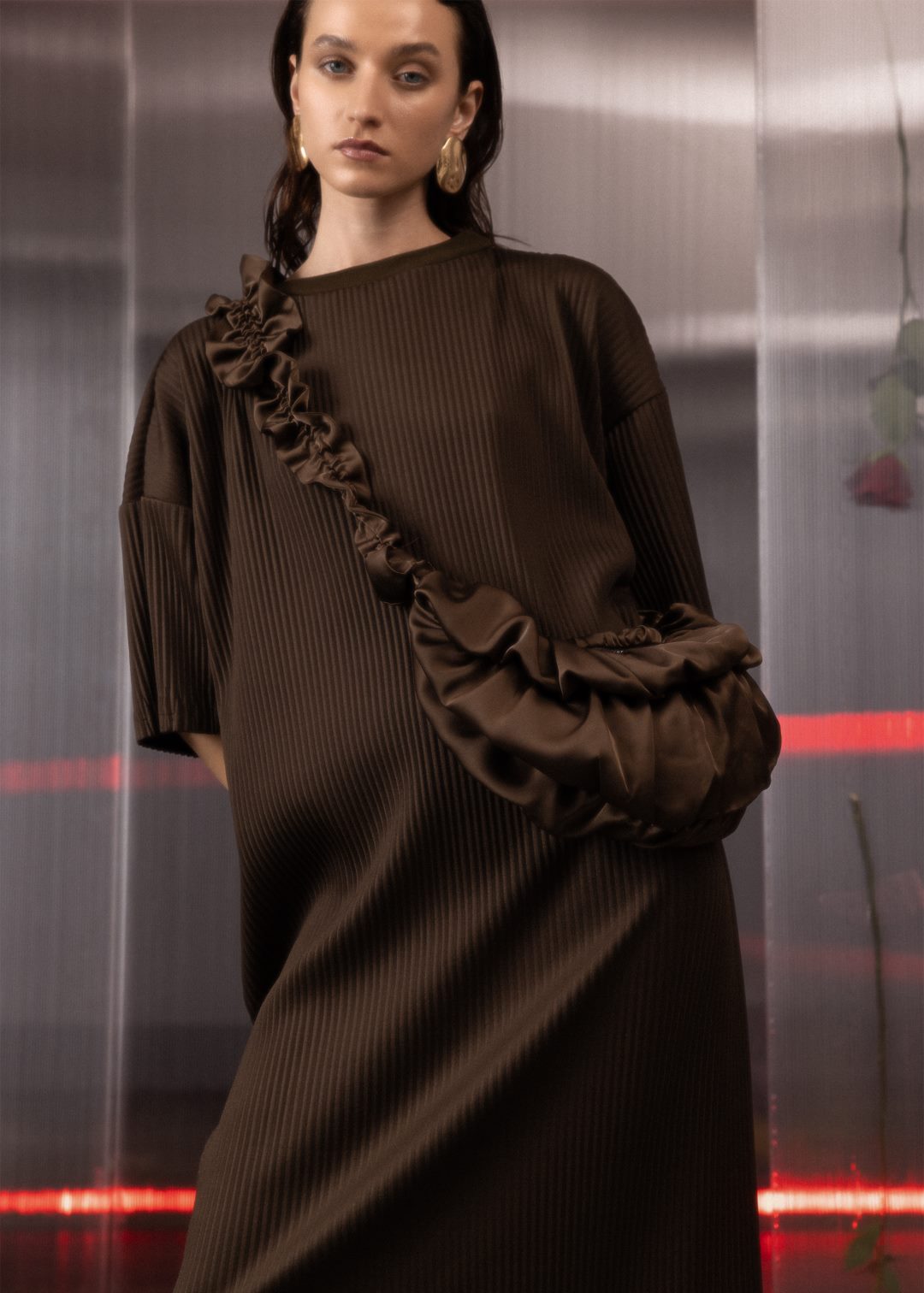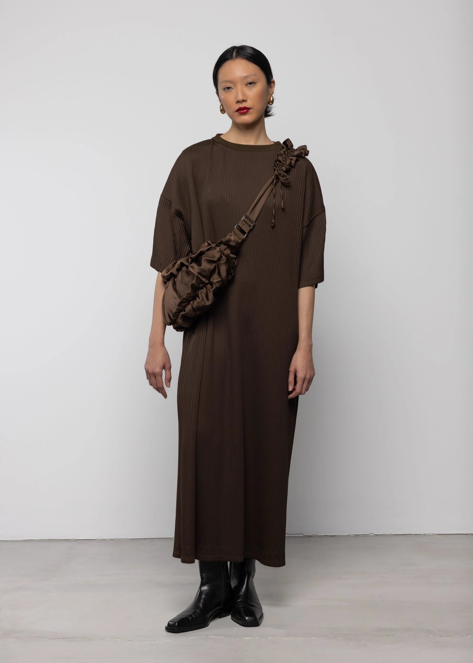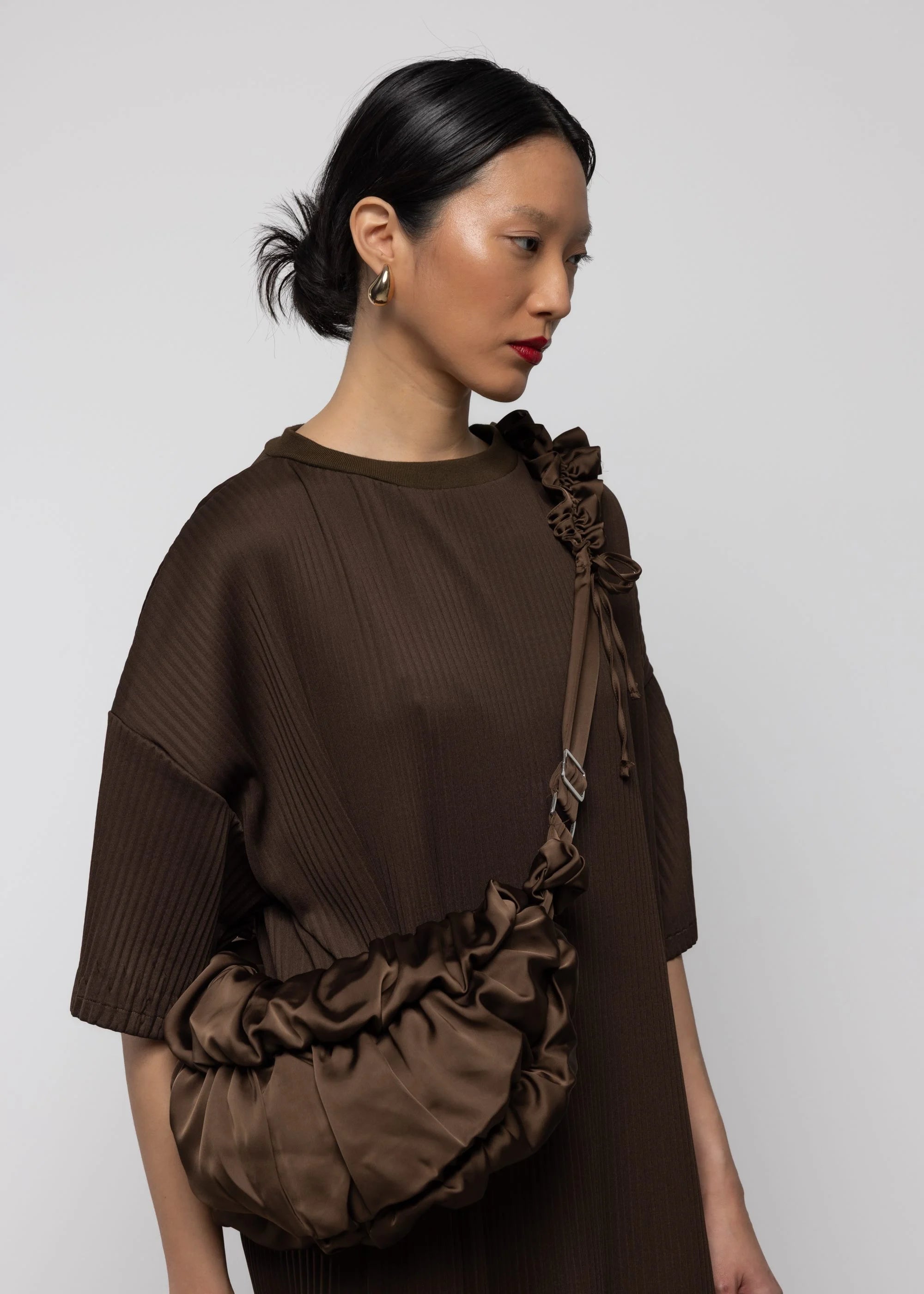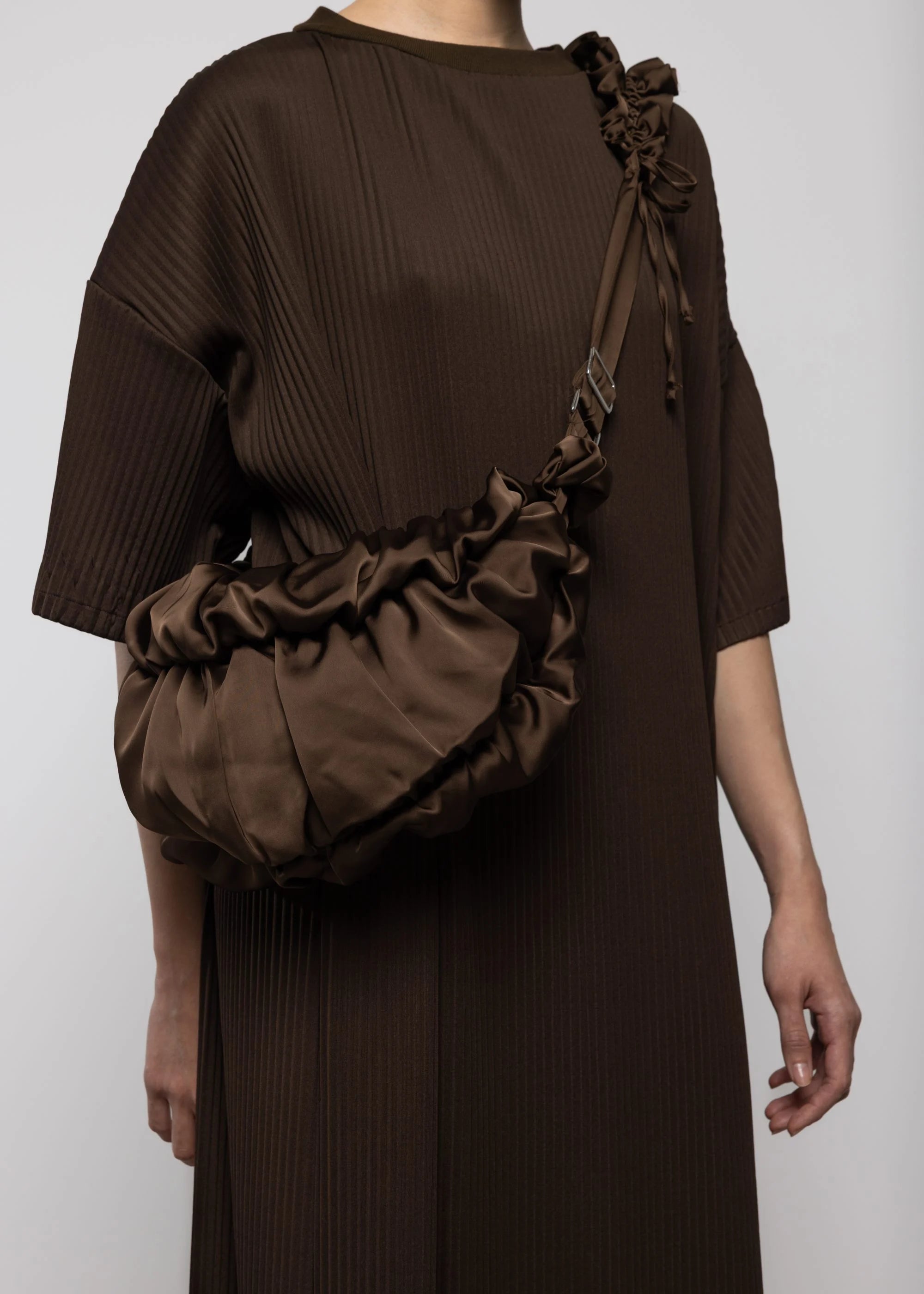 Ruffle Satin Crossbody Bag Chocolate
