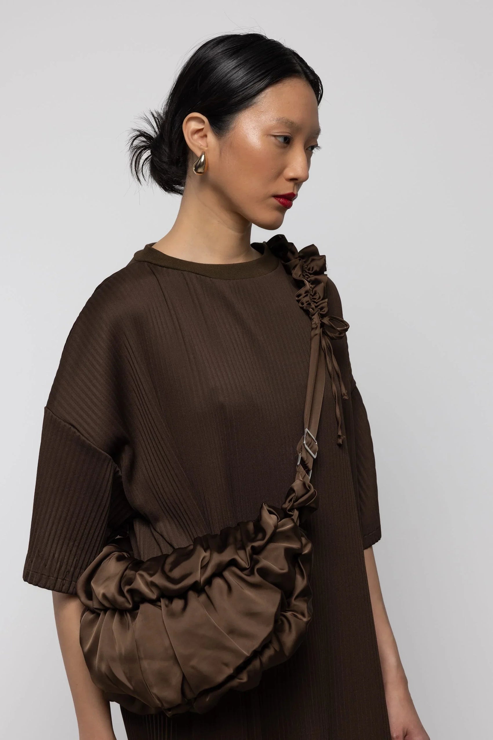 Ruffle Satin Crossbody Bag Chocolate