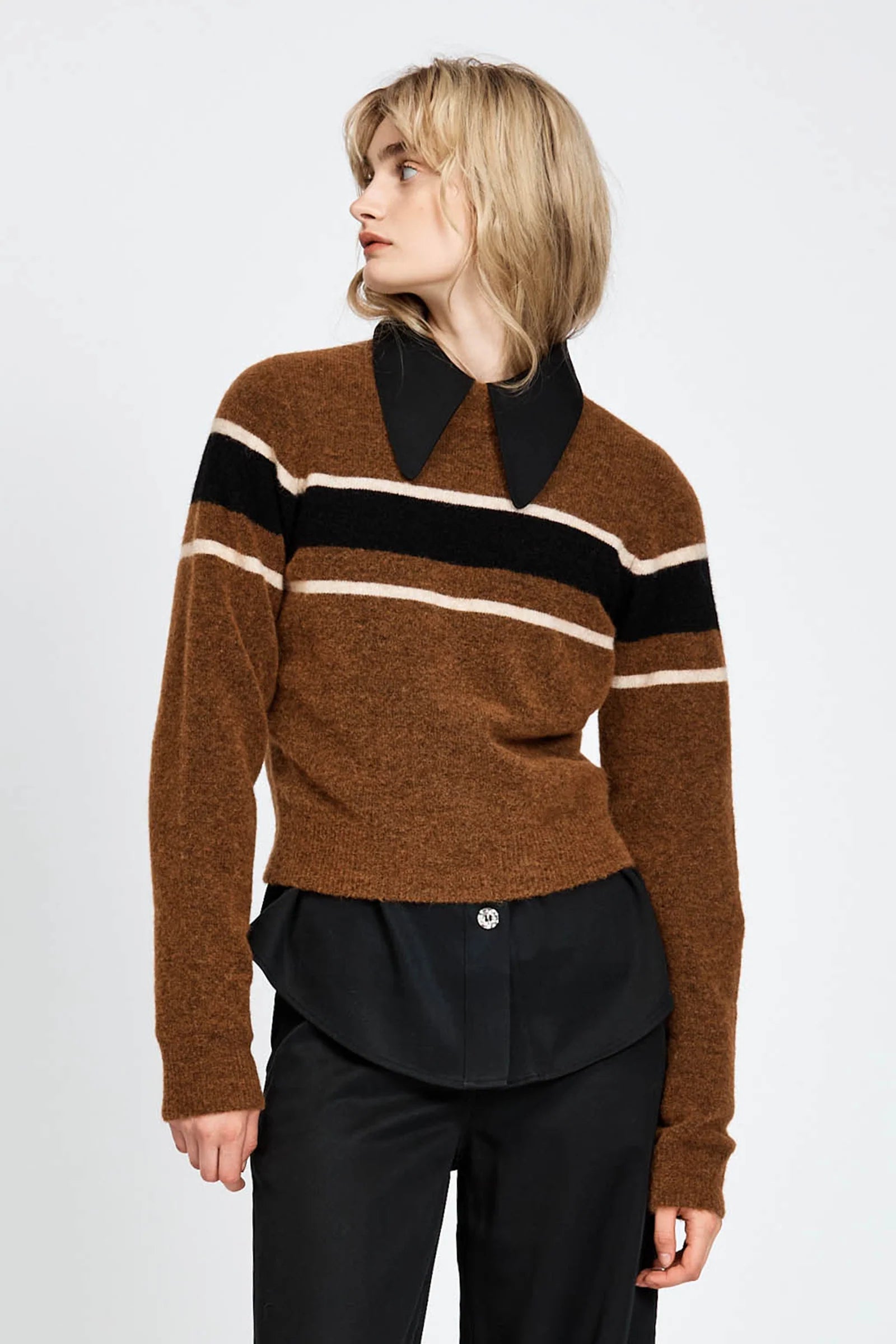 - Stripe detailing across bust and arms