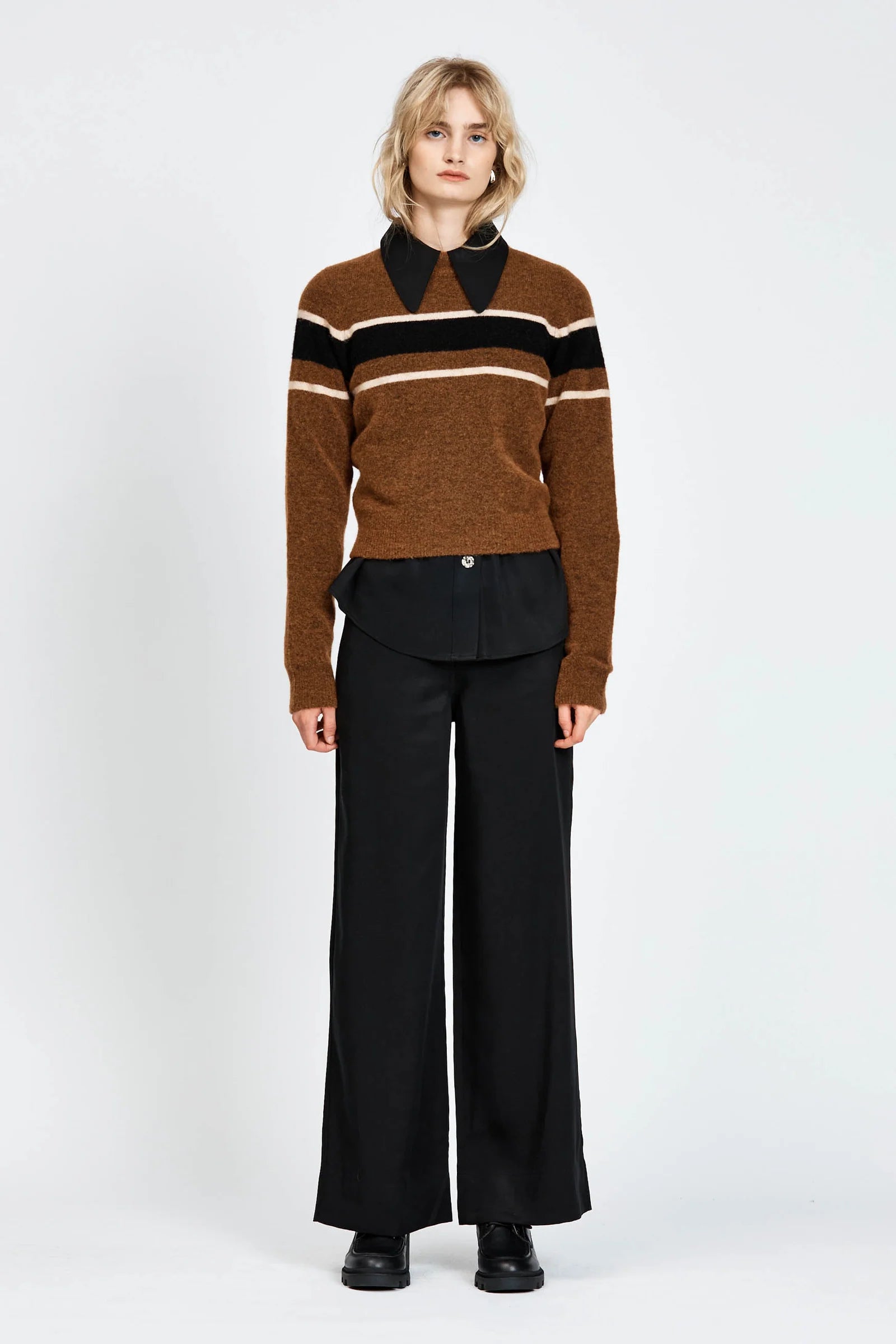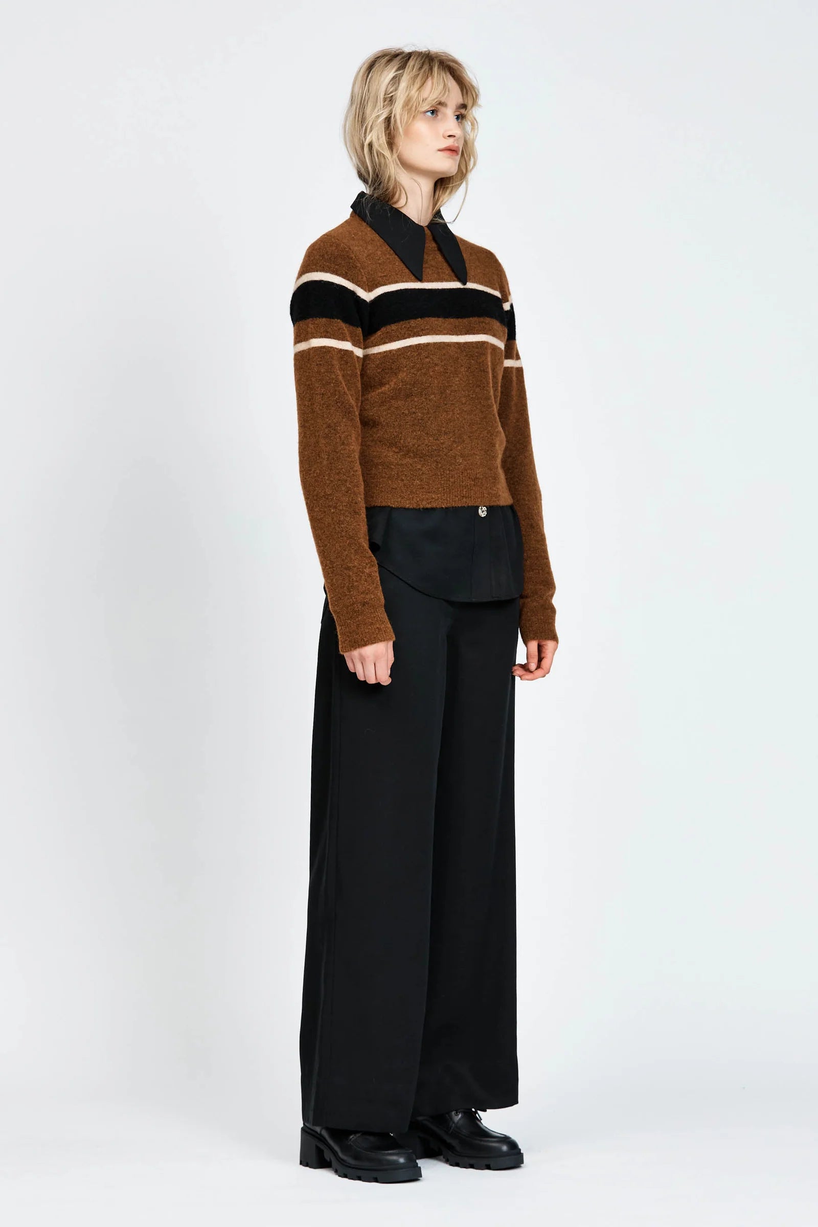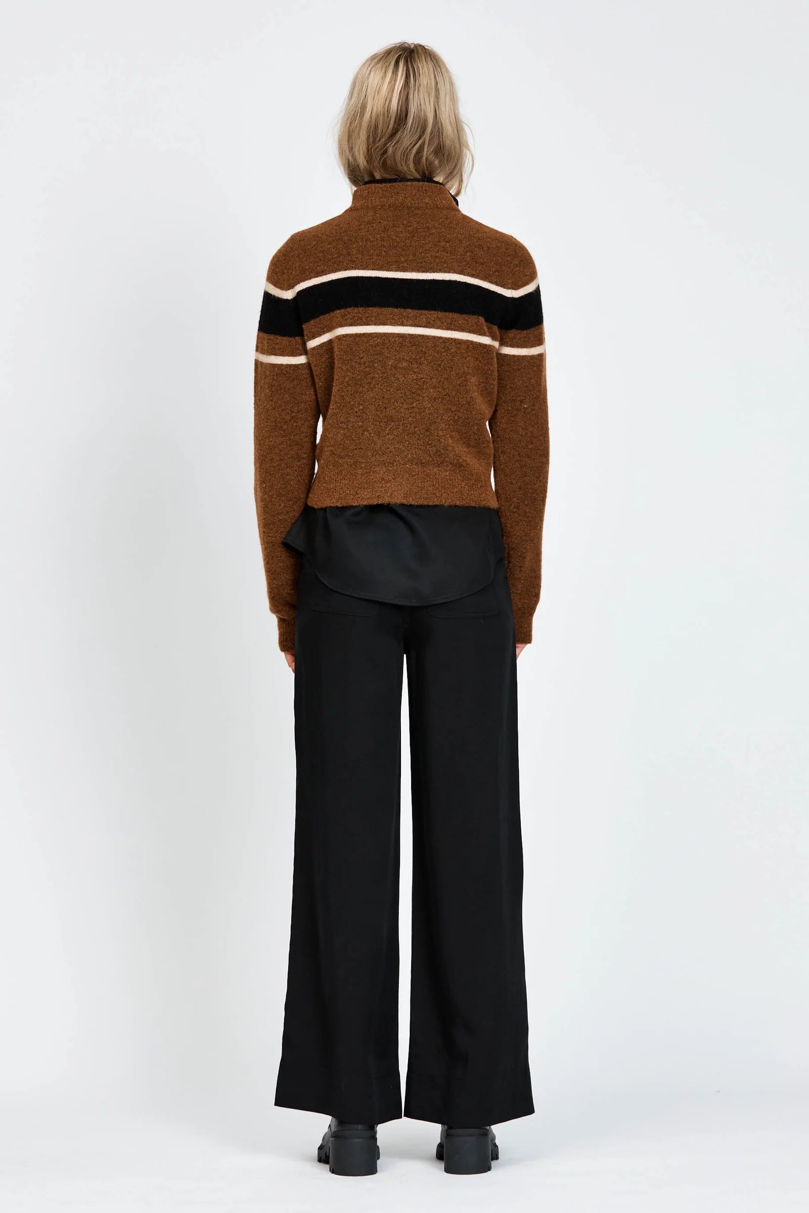 The Myrsky Jumper is a regular fit, pull-over style with long sleeves. Features include contrast coloured stripe detailing across the bust and arms. Made from a soft Alpaca and Wool blend.