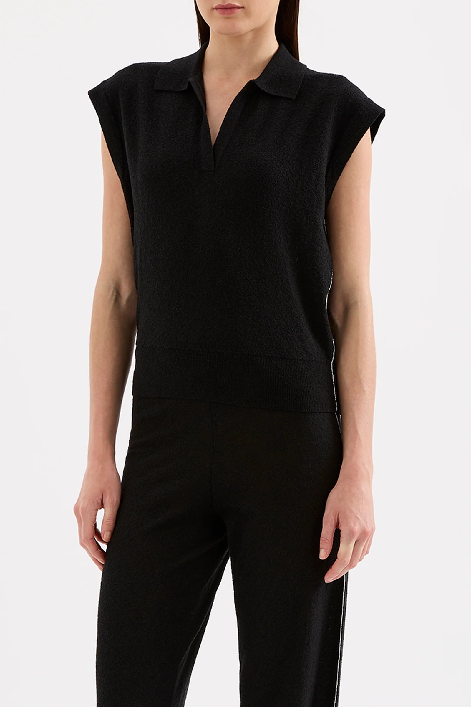 The Jett Knit Top is made from a premium yarn fabrication that is lightweight, textured and has a dry hand feel. This knit top features a relaxed fit, collared design, ribbed hem and contrast down sides.