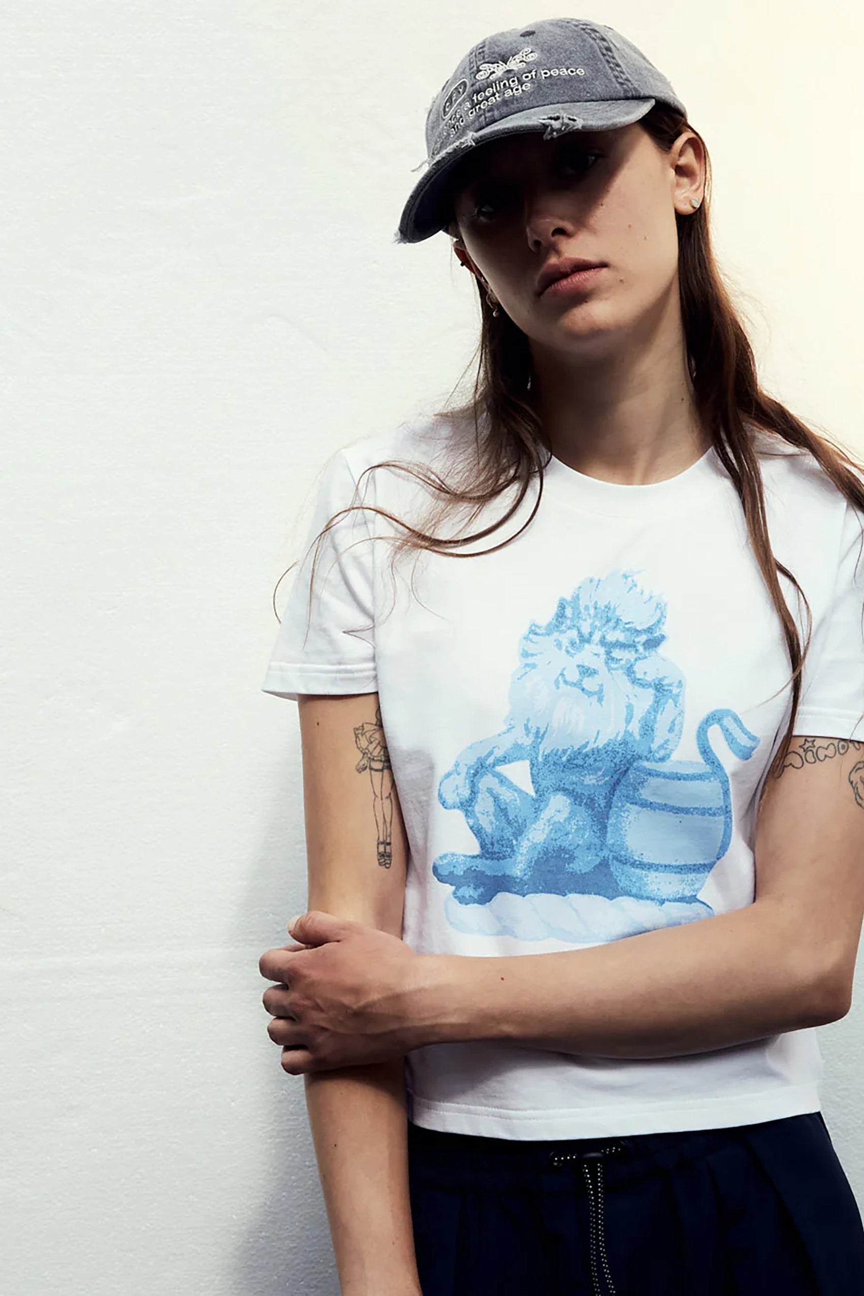 Our Mane baby tee made from a midweight 200gsm washed cotton fabric featuring ora. A cropped, fitted unisex shape that still allows for a relaxed drape.